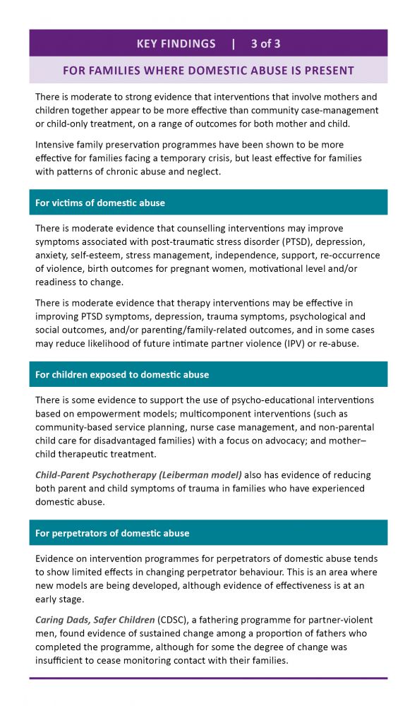 The review of evidence published as part of this project has identified interventions that have been shown through robust studies to be effective in improving outcomes for vulnerable children.