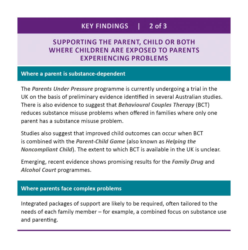 - for supporting the parent, child or both where children are exposed to parents experiencing problems